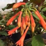 Vigorous, upright fuchsia. Dark bronze-red leaves and stems provide striking contrast to vibrant clusters of deep coral-red tubular flowers. A must for the hummingbird garden! Performs well in containers. Full to partial shade. 12-24″ heigh.