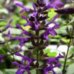 Nice bedding plant in borders or mass plantings. `Rhea` has green scented leaves and deep, violet-blue spikes of closely-packed tubular flowers. 12-24″ height. Sun.